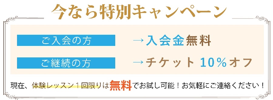 また体験レッスン後の入会の場合は入会金無料です。