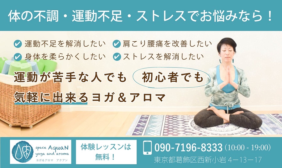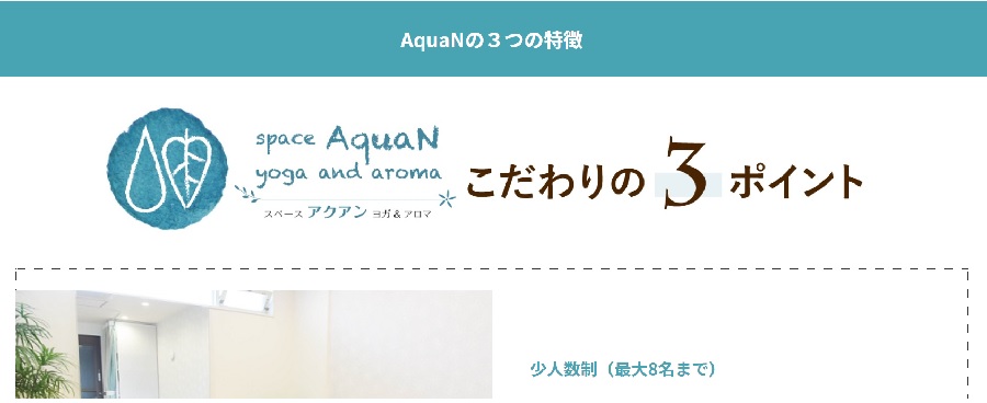 そして最後に「運動が苦手な人でも~気軽に出来るヨガ&アロマ」で悩みの解決策を提示します。